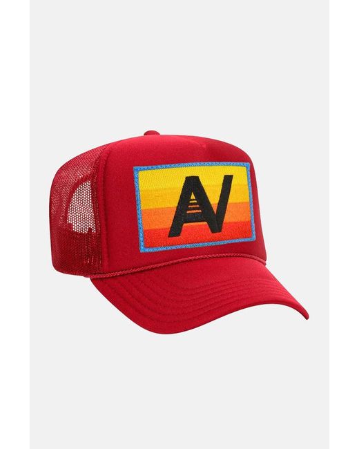 Aviator Nation Synthetic Logo Rainbow Low Rise Trucker Hat In Red Lyst Canada